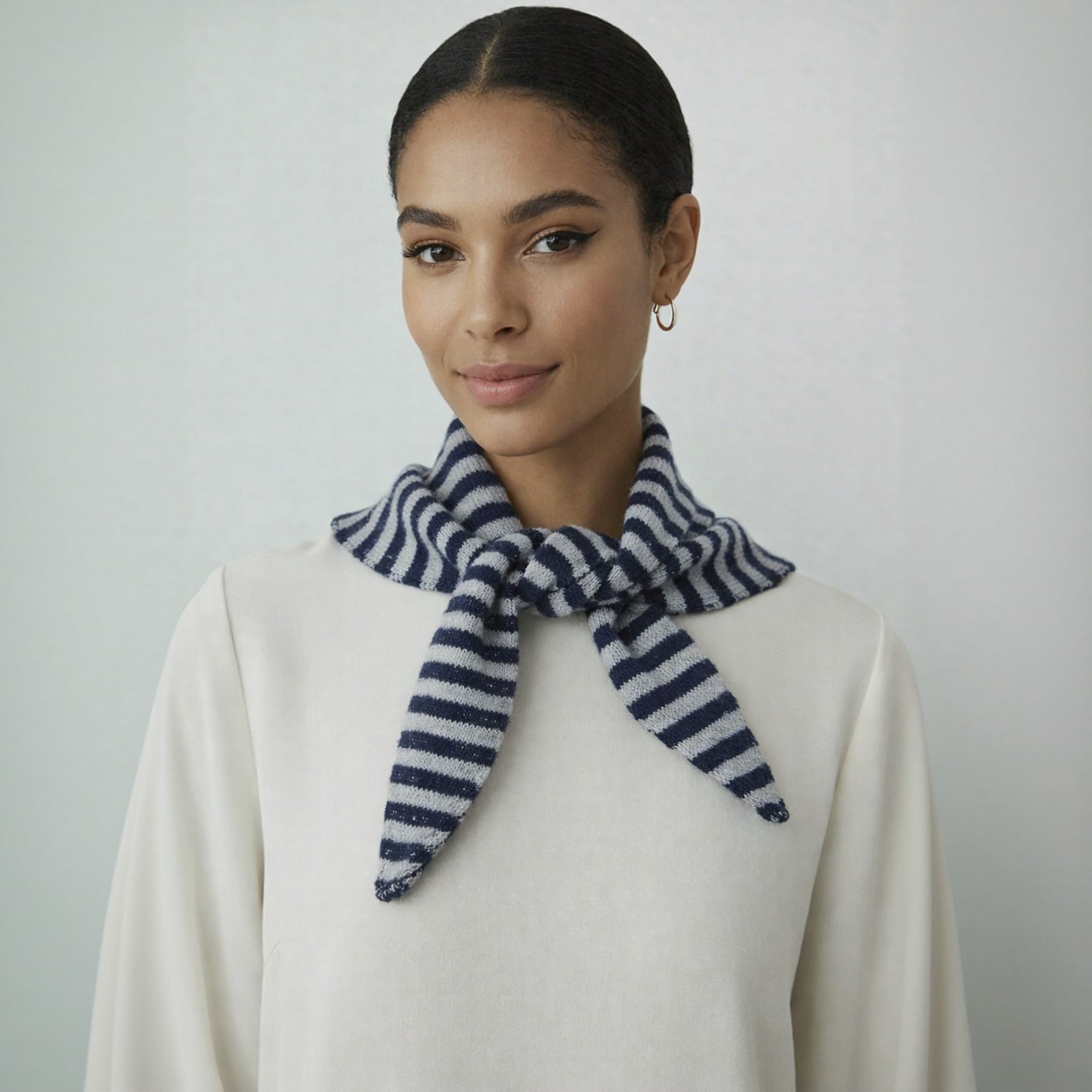 This is a gorgeous, soft triangle scarf in a navy and soft blue stripe These striped triangle scarves are super on-trend and easy to wear. They can be embroidered with...