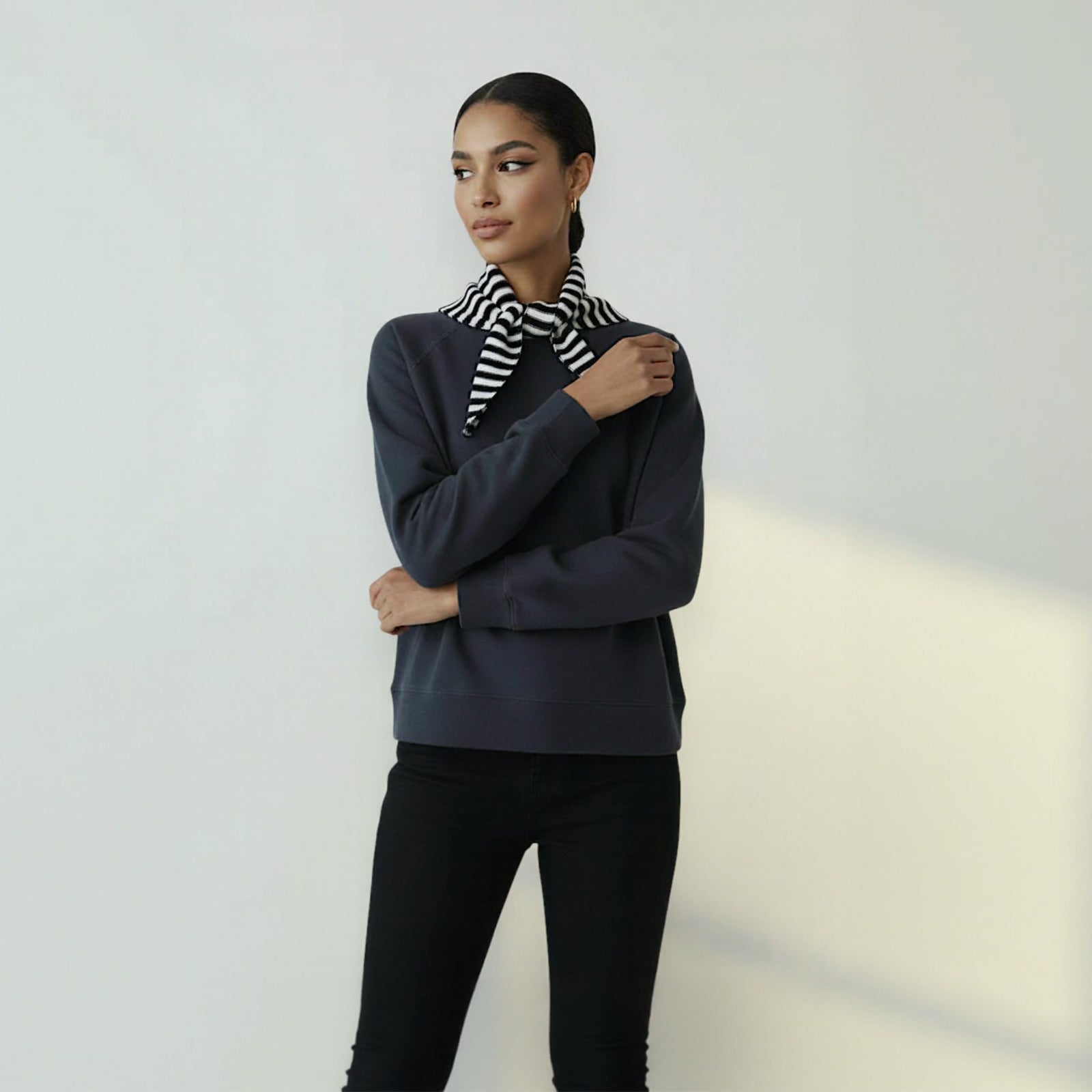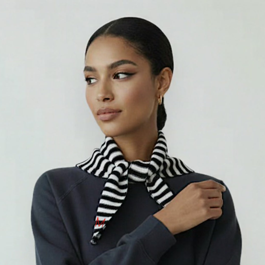 This is a gorgeous, soft triangle scarf in a charcoal and soft white stripe These striped triangle scarves are super on-trend and easy to wear. They can be embroidered with...